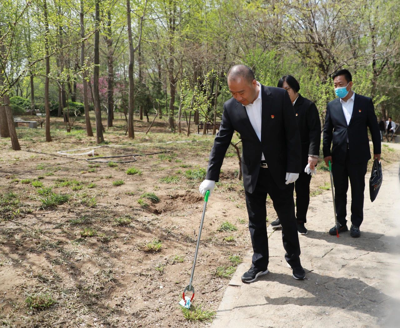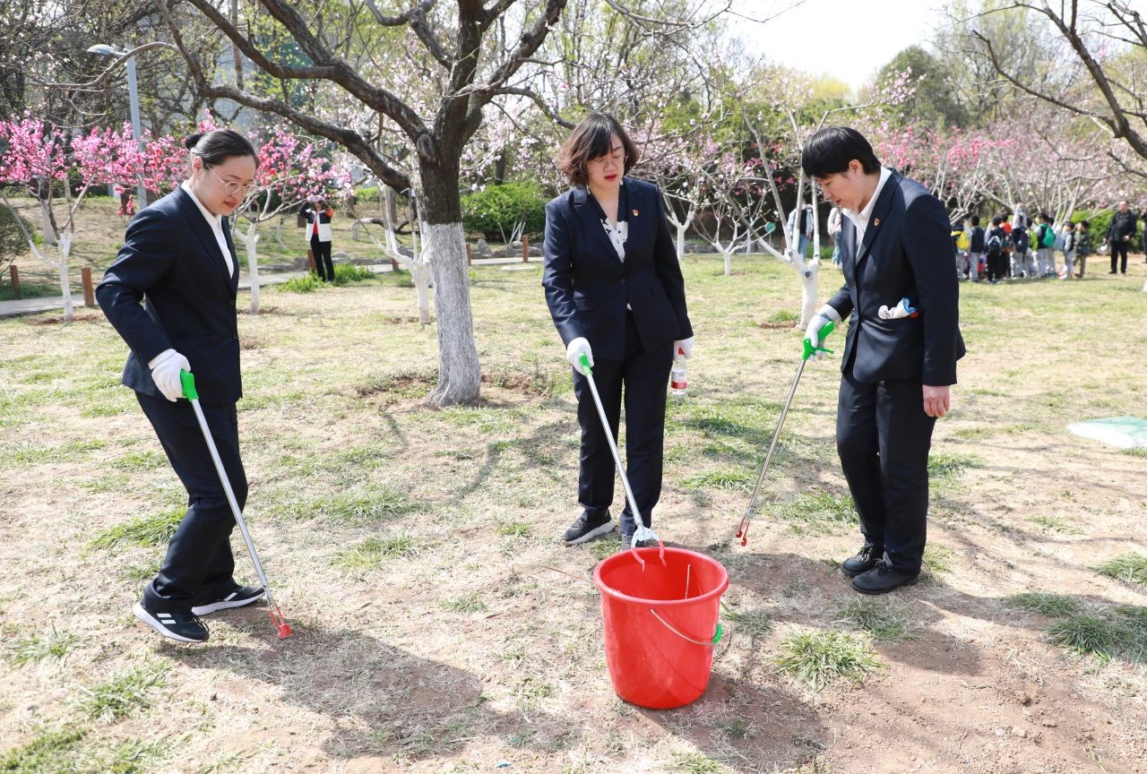 参观结束后,党员志愿者们手持夹子、垃圾袋、塑料桶等清洁工具,深入泉城公园,开展绿色家园共建行动。大家分工明确,有的用夹子夹起地上的烟头和纸屑,有的清理杂草,有的向正在公园游玩的市民宣传环保知识,倡导绿色生活理念,游玩的市民不时向大家投来赞许的目光,还有的市民跟我们一起捡拾草坪上的杂物,阳光下党员胸前的党徽格外引人瞩目,在大家的共同努力下,环境焕然一新,整洁的步道、葱郁的绿植与党员们忙碌的身影构成了一幅和谐的画面。