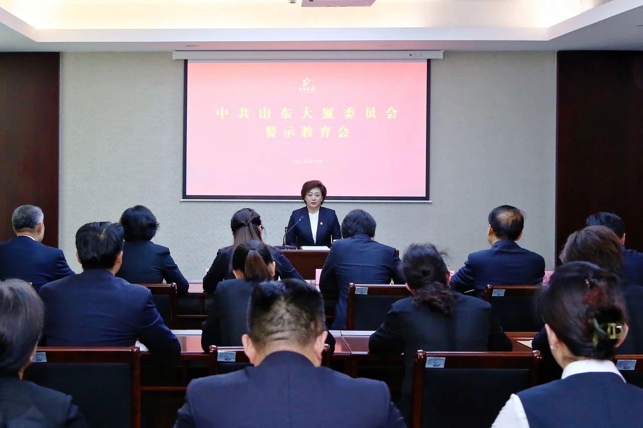 参观结束后,在活动现场同步召开山东大厦警示教育会,党委书记鹿敏发表讲话。会议认真落实全省警示教育会精神和集团工作安排,结合典型案例,深入剖析腐败问题产生的思想根源和严重后果。会议强调,全体党员干部要以案为鉴、反躬自省,进一步筑牢思想防线、坚守法纪红线、守住廉洁底线。要在理论武装上再加力,持续筑牢思想根基;要在纪律建设上再加力,全面强化刚性约束;要在风腐同治上再加力,深化拓展治理成效;要在责任落实上再加力,压紧压实传导链条,以更加坚定的信念、更加过硬的作风、更加务实的举措,持续推动大厦各项工作再上新台阶!
