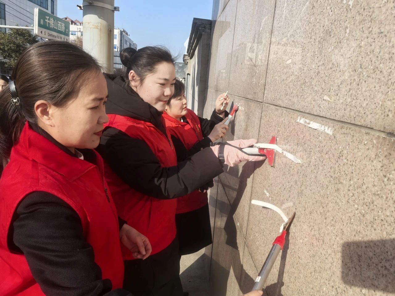 大厦青年团员志愿者们齐聚大厦庭院,手持清洁工具,热情高涨地清扫落叶杂物,整理闲置物品,让庭院焕然一新。随后,志愿者们走进千佛山西路社区,清扫楼梯、擦拭扶手、清理小广告,为居民打造整洁舒适的生活空间。