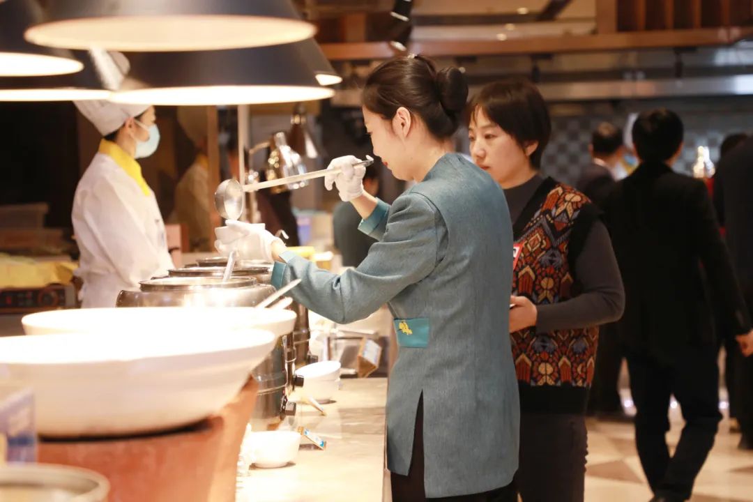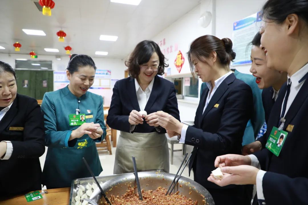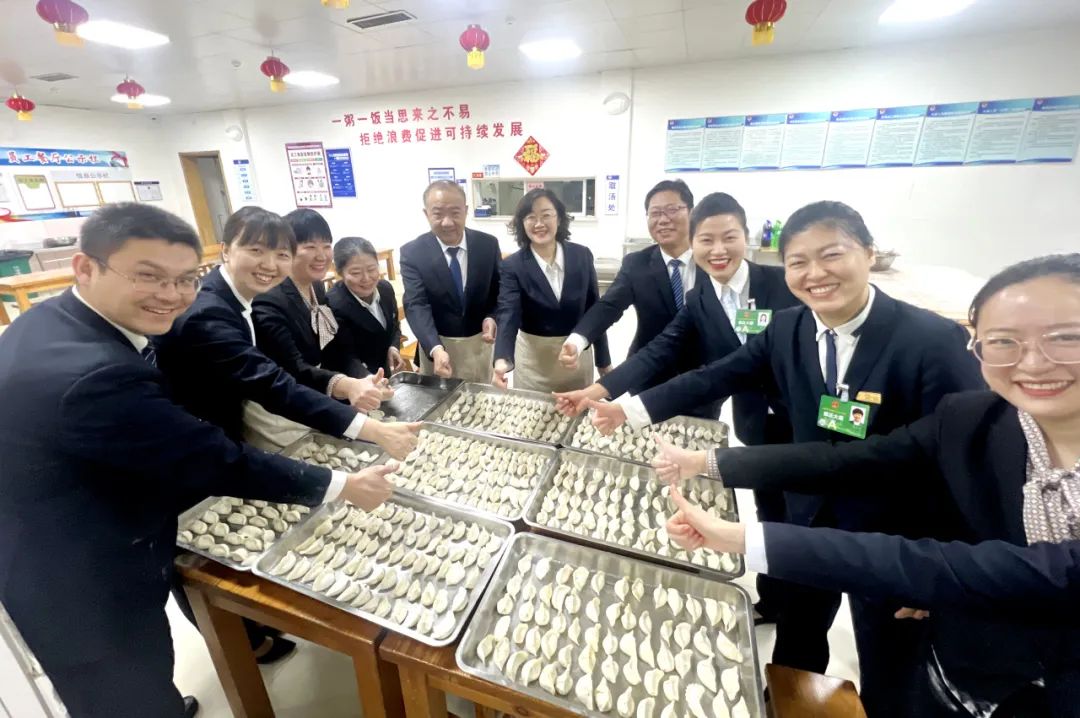 会议接待期间,颐正大厦全体干部员工不按岗位职级,不分前台后台,全力以赴、尽心竭力保障会议接待的顺利进行。“你来服务客人,我来关爱你”。小年当天,颐正大厦在员工餐厅特别组织策划了“贺小年·包福饺”活动,大厦领导班子到场参与,和员工们一起共享团圆味。