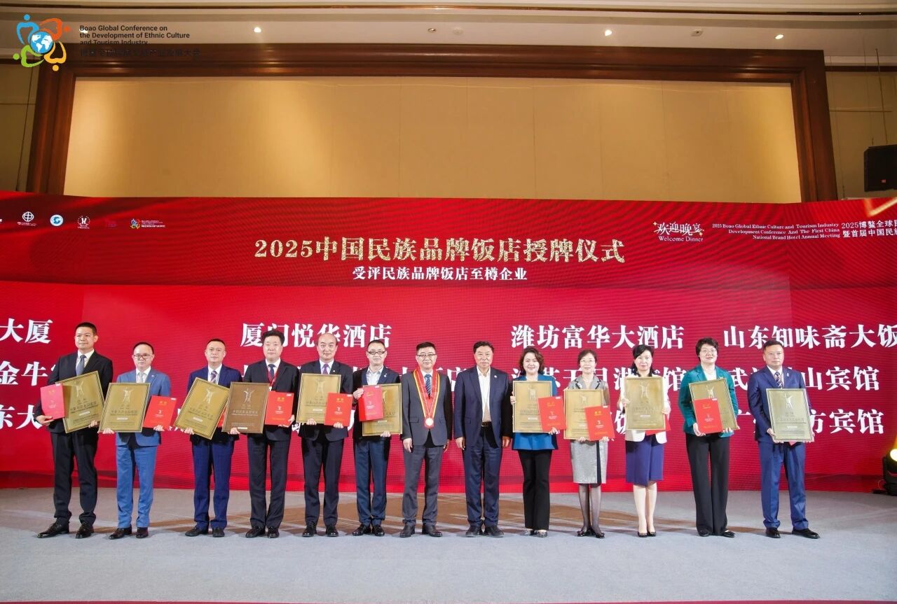 2025年10月24日~26日,由中国民族贸易促进会文化与旅游工作委员会、中国民族品牌饭店评定委员会、博鳌全球民族文旅产业发展大赛组委会联合主办的“2025中国民族品牌饭店年会暨颁奖典礼”在海南博鳌盛大举行。本届大会以“共融・共创・共兴・共享——民族文旅・点燃经济引擎,赋能美好未来”为主题,汇聚全球文旅资源,共商民族文旅产业高质量发展大计。
